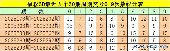 类型分析:福彩3D在上一个30期周期内(第2025263期-第2025292期),豹子号码莫得出现,组三号码开出9次,所占比例为30%,组六号码出现21期,出现比例为70%,其中组六号码开出比例昭着较高。